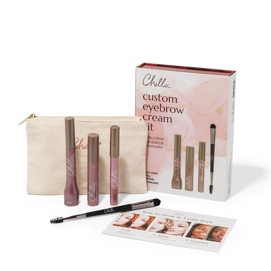 You customize the Kit by selecting the Eyebrow Cream shade to match your customer, and by selecting the Highlighter Pencil shade to match your customer.